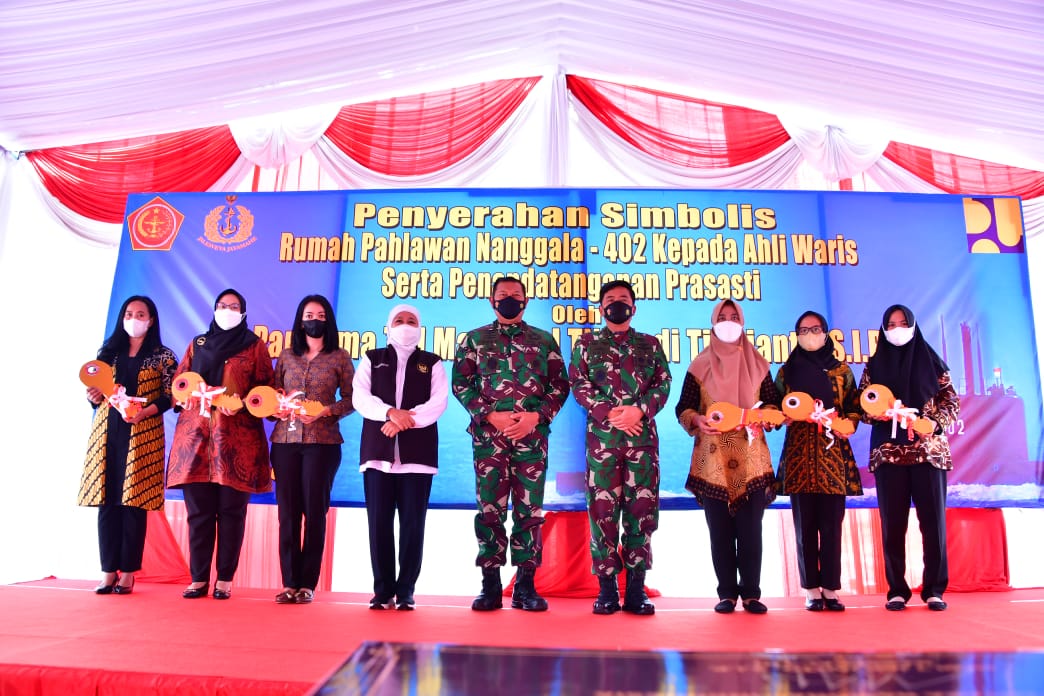 Hal ini diungkapkan oleh Panglima TNI, saat menyerahkan secara simbolis kunci rumah kepada perwakilan dari ahli waris Pahlawan Nanggala-402, sekaligus melaksanakan penandatanganan Prasasti Perumahan Nanggala-402 yang berlokasi di Desa Kedung Kendo, Kecamatan Candi, Kabupaten Sidoarjo, Jawa Timur pada Kamis (11/11/2021).