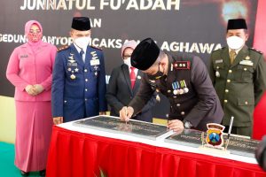 Peresmian Masjid dan Gedung berlokasi di lingkungan Mapolres itu ditandai pemotongan tali pita dan penandatanganan prasasti dengan diiringi pembacaan shalawat Nabi Muhammad SAW.